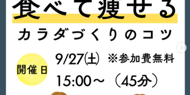 【茅ヶ崎】栄養セミナー「運動だけじゃもったいない! 食べて痩せるカラダづくりのコツ」