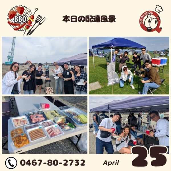 サッカーグランドにて子供バーベキュー大会【4月25日 配達日誌】