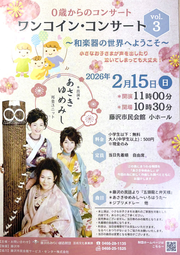 | 主催・協賛団体など | 【主催】公益財団法人藤沢市みらい創造財団 芸術文化事業部 |