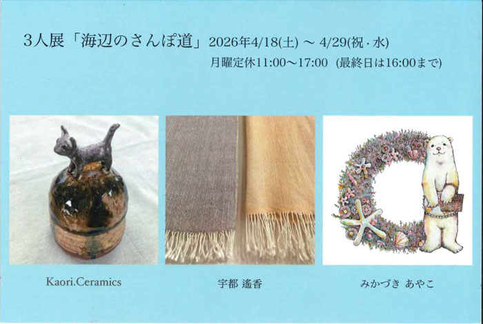 陶器、織物、イラストによる「海辺のさんぽ道」をテーマにしたグループ展