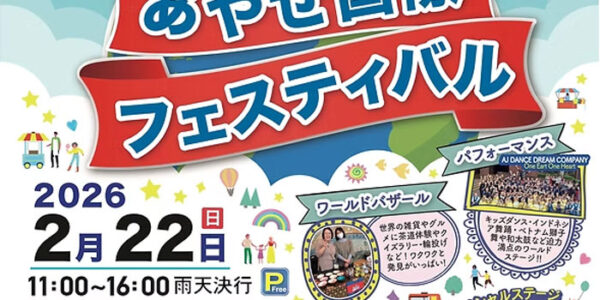 0 2026年2月22日(日)、綾瀬市オーエンス文化会館にて「第24回 あやせ国際フェスティバル」が開催されます。 ちがいはちから! 世界はひとつ 見つけよう!新たに広がる世界観 ◆内容 ・ワールドバザール 世界の雑貨や … 続きを読む ※本年度は終了しました※【綾瀬】第24回 あやせ国際フェスティバル