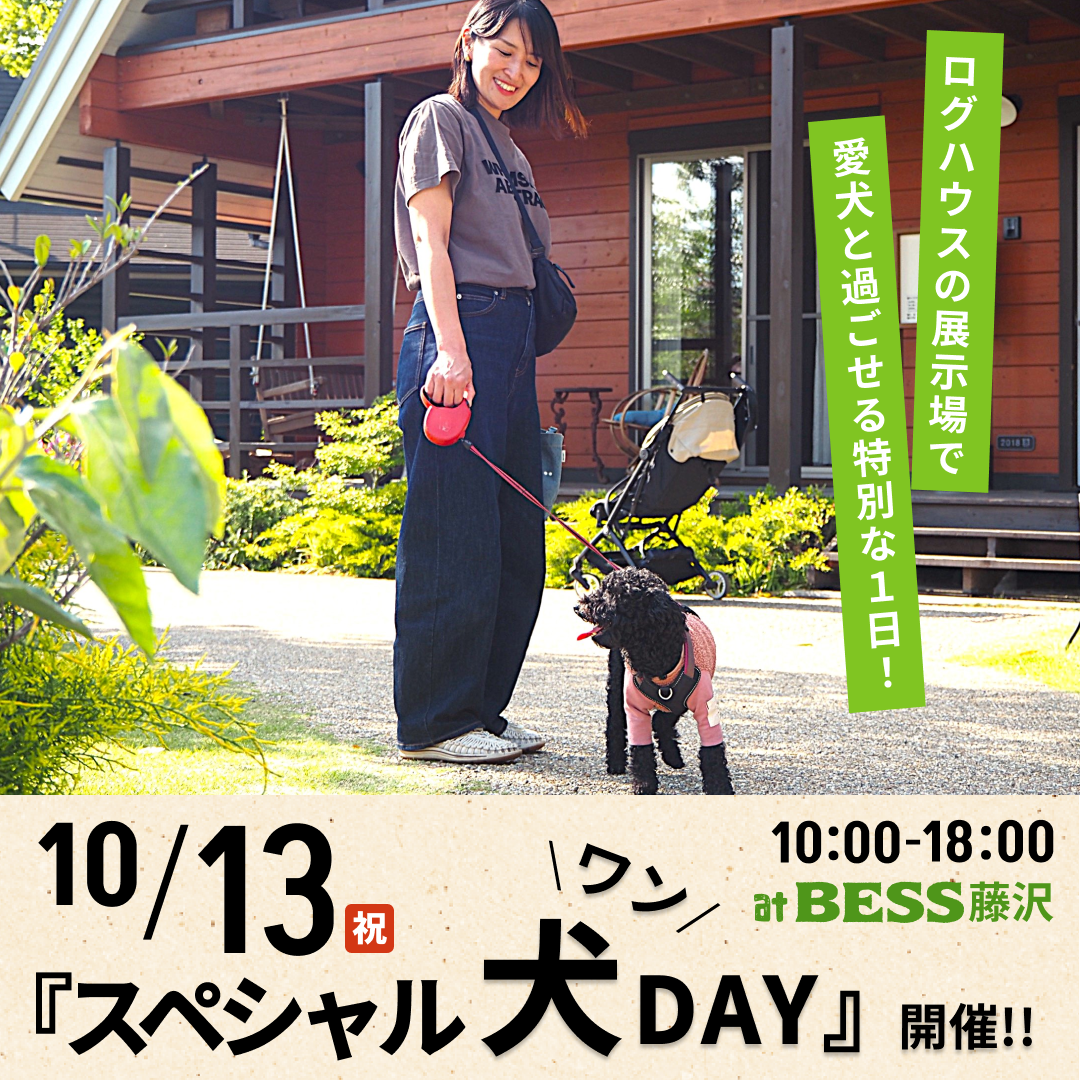 愛犬と一緒に、のんびりログハウスを体験しませんか?ウッドデッキでのんびり過ごしたり、お気に入りの場所で写真を撮ったり。ご家族でBESSの暮らしを思いっきり体感いただけます。普段のBESS藤沢ではなかなか味わえない、愛犬と一緒に過ごせる特別な1日です!