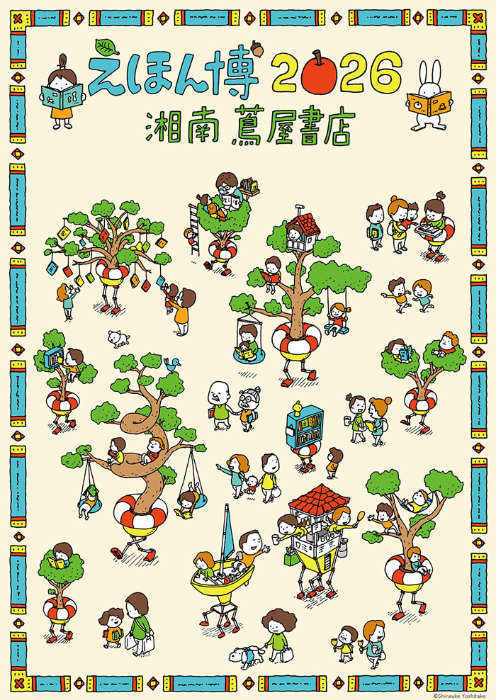 絵本作家によるトークイベントや似顔絵会、サイン会のほか、絵本や雑貨、ワークショップブースなどが集まるマーケット。キービジュアルは、湘南在住の絵本作家:ヨシタケシンスケさんによるもの。2022年に代官山 蔦屋書店で始まった、絵本をつくる人・届ける人・読む人がつながり、絵本文化を育てていこう、という企画。世代や国境を超えて絵本の魅力が広がっていきますように。