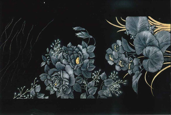 先端にダイヤモンドが付いた専用ペンでガラスの表面に細かい線や点を彫刻する技法です。