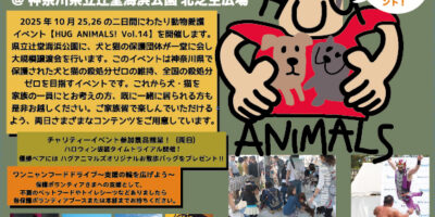 1+ 2025年10月25日(土)、26日(日)、県立辻堂海浜公園にて「HUG ANIMALS! Vol.14」が開催されます。※詳細が分かり次第情報更新いたします。 全国の犬、猫たちの殺処分ゼロを目指して! 県立辻堂海 … 続きを読む 【辻堂】HUG ANIMALS! Vol.14