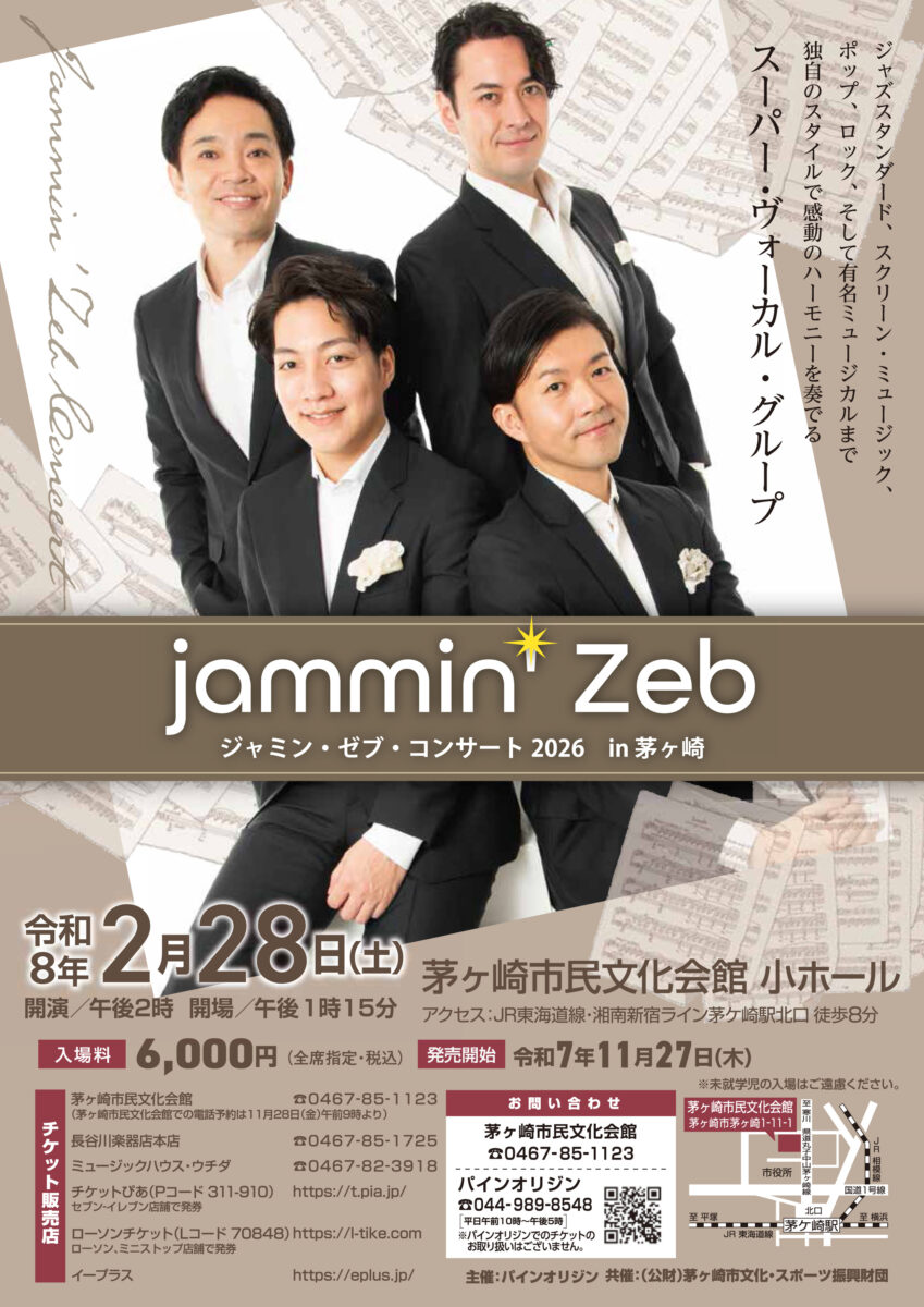 スーパー・ヴォーカル・グループ【jammin’ Zeb】が今年も茅ヶ崎にやって来ます♪
