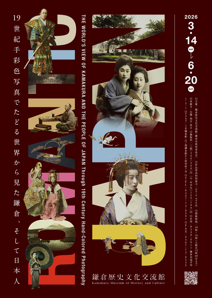 当時の「世界」であったヨーロッパとアメリカは、浮世絵と手彩色写真を通して日本を発見し、それが今日まで続く、「ROMANTIC」なJAPANのイメージの形成に大きな影響を与えました。本展では、幕末・明治期に撮影され、手彩色を施された写真等を通して、言語の壁も時代も超えて人々を魅了し続ける「ROMANTIC JAPAN」をご紹介します。