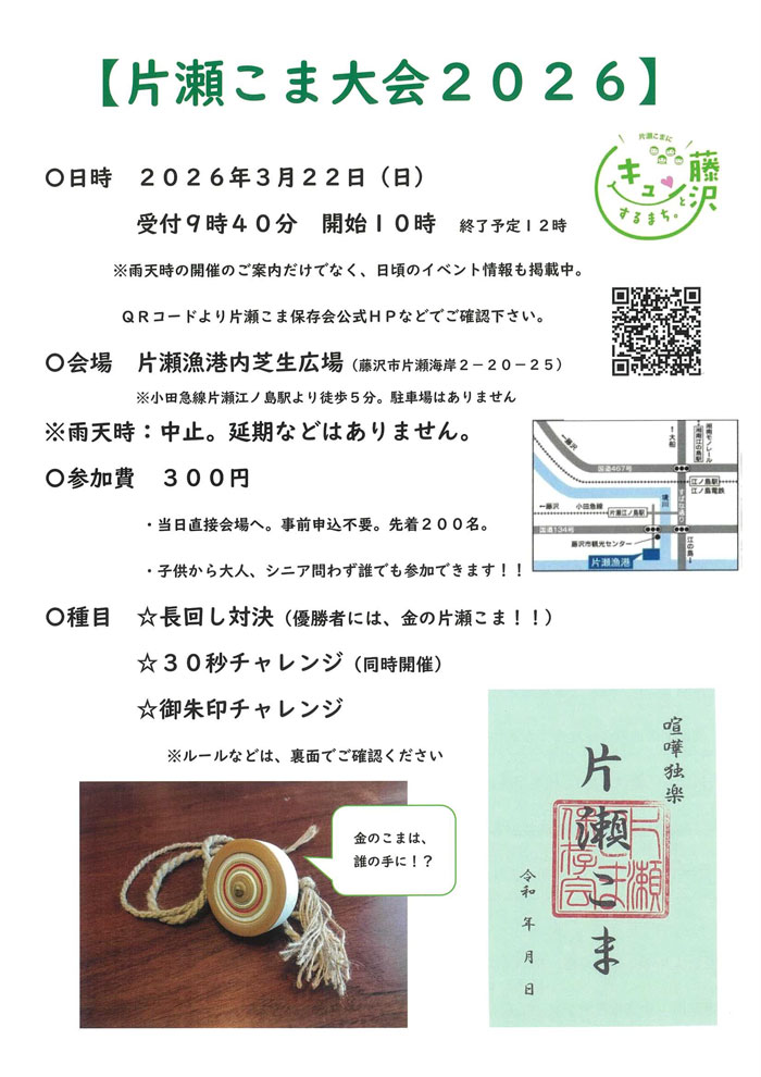 | 主催・協賛団体など | 【主催】片瀬こま保存会、片瀬・江の島まちづくり協議会 |