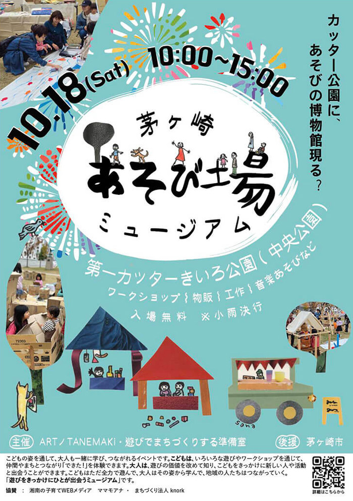 子どもの姿を通じて、大人も一緒に学び、つながれるイベントです。子どもは、いろいろな遊びやワークショツプを通じて、仲間やまちとつながり「できた!」を体験できます。大人は、遊びの価値を改めて知り、子どもをきっかけに新しい人や活動と出会うことができます。子どもはただ全力で遊んで元なはその姿から学んで、地域の人たちはつながっていく。「遊びをきっかけにひとが出会うミュージアム」です。