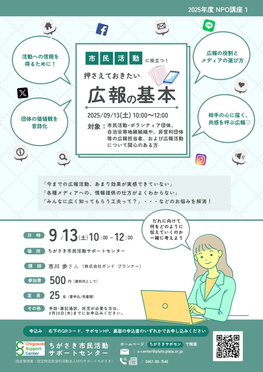 2025年度NPO講座の第1弾は、市民活動に役立つ! 押さえておきたい「広報の基本」です。