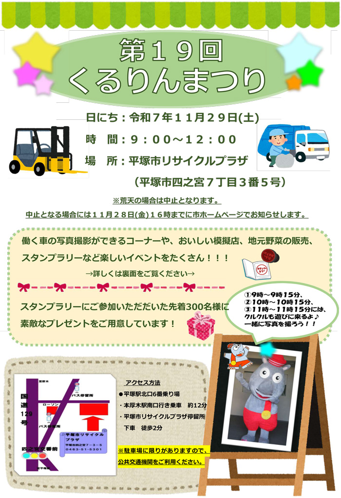 | アクセス | JR「平塚」駅北口6番バス乗り場より「本厚木」駅南口行きにて「平塚市リサイクルプラザ」停留所下車徒歩約2分 |
