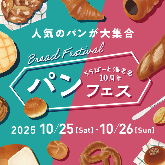 また、ららぽーと海老名の10周年を記念して、同じ日に海老名駅西口中心広場で「サンリオDAY」が開催されるなど、様々なイベントが開催されます。パンを片手に、素敵な一日を!
