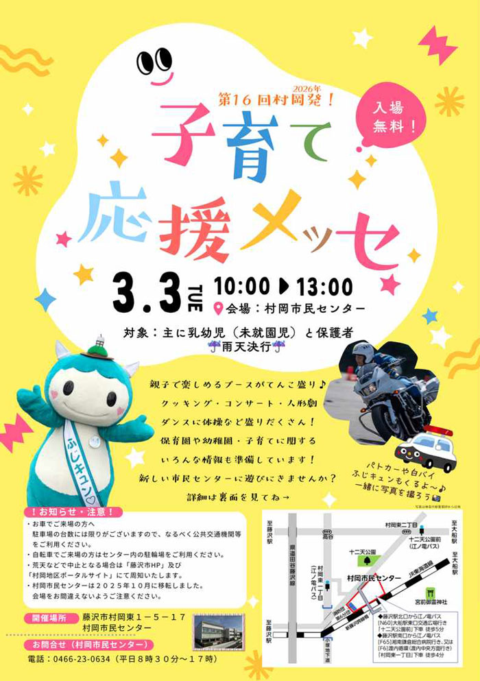 | 主催・協賛団体など | 【主催】村岡発!子育て応援メッセ実行委員会 |