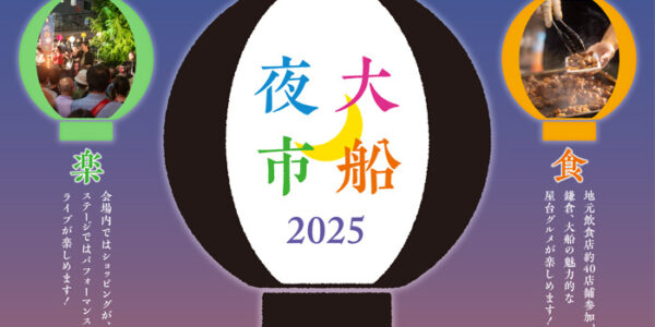 1+ 2025年11月3日(月・祝)、大船駅近くの芸術館通りにて「大船夜市 2025」が開催されます。 ~夜市でつなぐ、大船のまち~ 大船の秋の夜を盛り上げるお祭りが、今年も開催! ◆遊 子どもむけの縁日コーナーを本部に … 続きを読む 【鎌倉・大船】大船夜市 2025