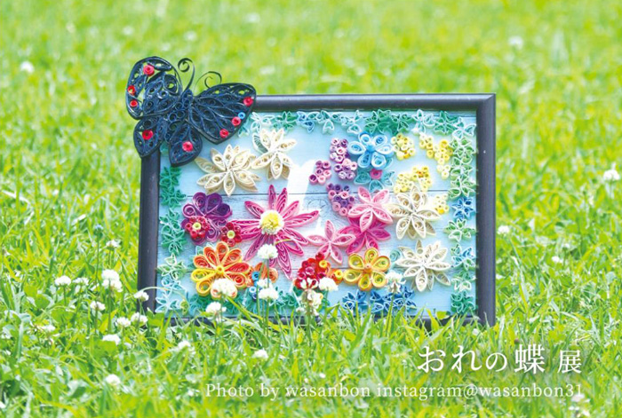 細長い紙をクルクルと丸めて絵柄を作っていく「クイリング」と詩による展示。