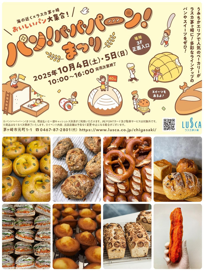 湘南~西湘エリアのおいしい情報をお届けしている月刊フリーマガジン「海のちかく」とラスカ茅ヶ崎がタッグを組んで、おいしいパンが大集合! 多彩なラインナップのパンやスイーツをぜひ!