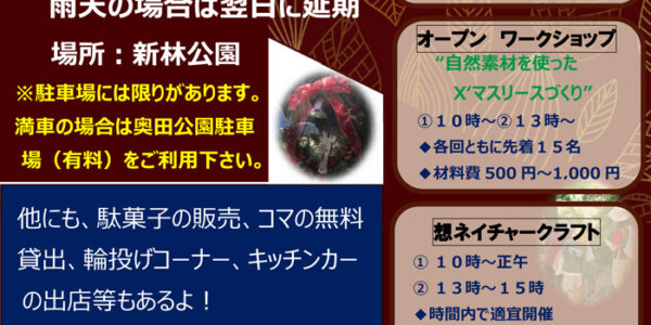 0 2025年11月23日(日)、藤沢市の新林公園にて「“秋のParkイベント” In 新林~自然と親しみ、昔遊びを体験!~」が開催されます。 周辺を山林に囲まれ、自然とみどりが多く残り、古民家や長屋門などの歴史的建造物 … 続きを読む 【藤沢】“秋のParkイベント” In 新林~自然と親しみ、昔遊びを体験!~