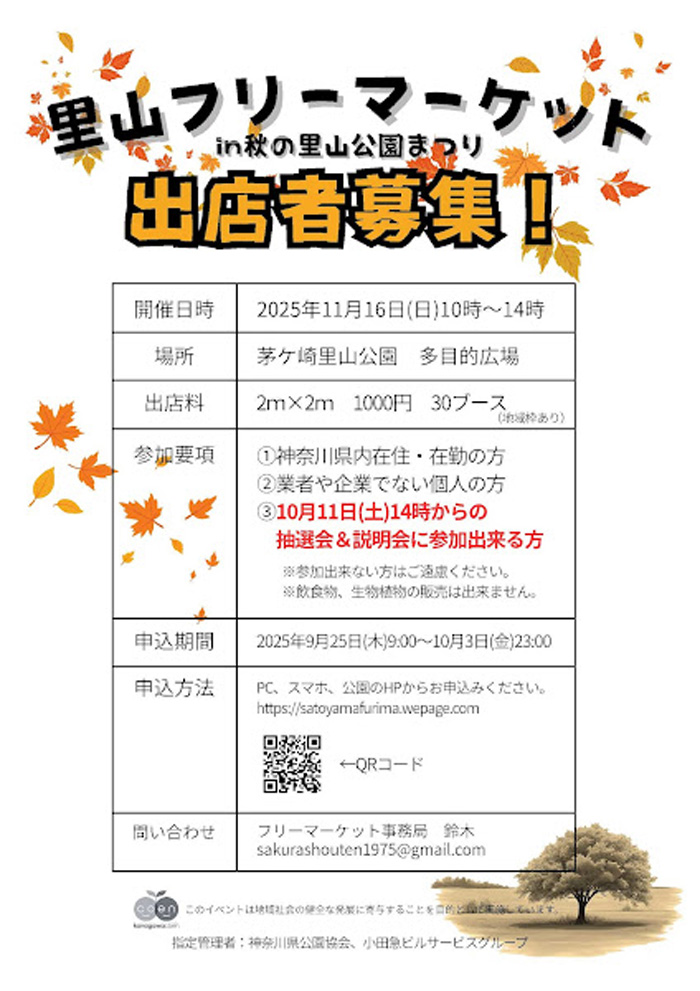 ★「里山フリーマーケットin秋の里山公園まつり」出店者募集!