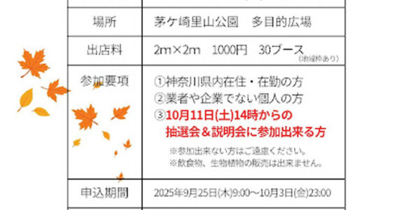 【茅ヶ崎】秋の里山公園まつり※10月9日までフリマ出店者募集中※