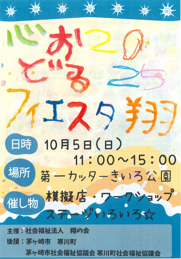 茅ヶ崎市・寒川町で、みんなが豊に暮らしていけるように活動している社会福祉法人 翔の会。そんな翔の会を利用している方、ご家族、ボランティア、地域にお住まいの方が交流し、地域の福祉に関心を持ってもらえるように、お祭りを開催します。