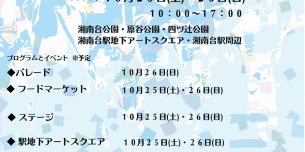 2+ 2025年10月25日(土)、26日(日)、湘南台駅周辺にて「第25回 藤沢市民まつり 湘南台ファンタジア」が開催されます。 夢からはじまる文化創造 <プログラム> ※予定 10月25日(土) ◆フードマーケット … 続きを読む 【藤沢・湘南台】第25回 藤沢市民まつり 湘南台ファンタジア