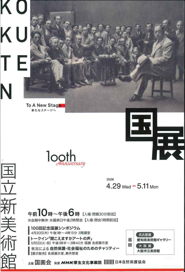 2026年に100回を迎える国展。絵画・版画・彫刻・工芸・写真の5部門を有する国画会主催の歴史ある展覧会です。