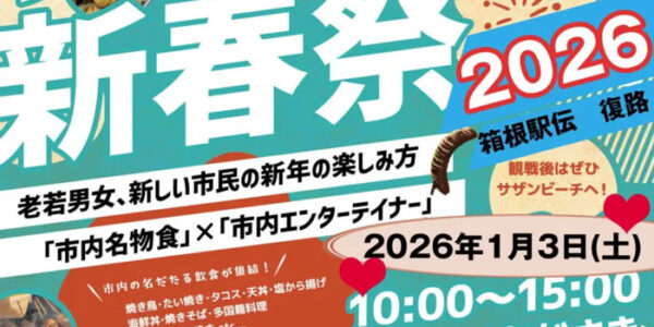 1+ 2026年1月3日(土)、サザンビーチちがさきにて「第2回 サザンビーチ新春祭 2025」が開催されます。 第1回同様、ビーチは市民の共有財産の理念の元、老若男女/障害があるなしに関わらず「ともに生きる」新しい年の … 続きを読む ※本年度は終了しました※【茅ヶ崎】第2回 サザンビーチ新春祭 2026