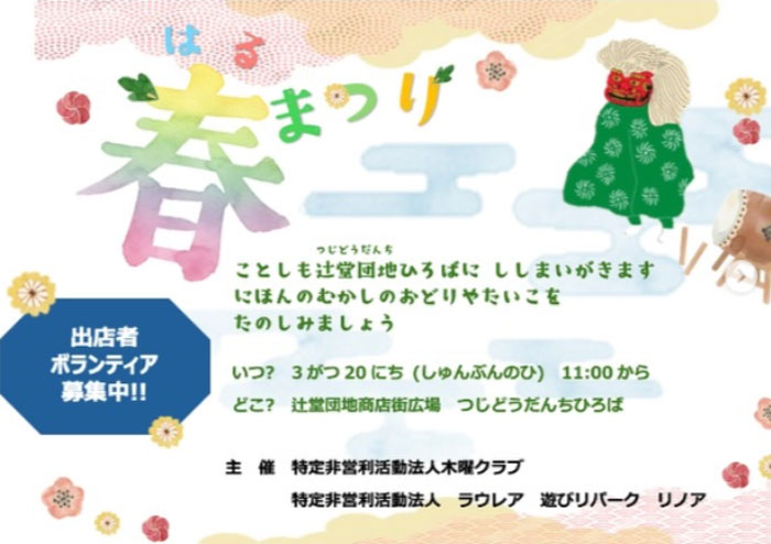 | 主催・協賛団体など | 【主催】NPO法人 木曜クラブ、NPO法人 ラウレア、あそびリパークリノア |