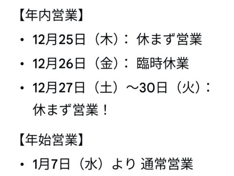 今週の定休日✨年内営業案内含む✨こちらタップして、⚠️必ずご確認を⚠️