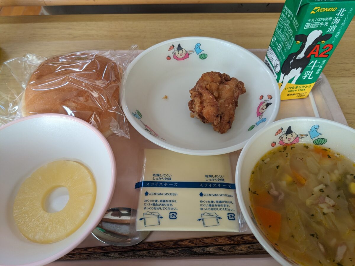 2日目の給食はパン食と人気の高いABCスープ。
