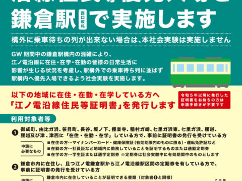 【鎌倉】GW期間中の江ノ電沿線住民等の「鎌倉」駅優先入場実施