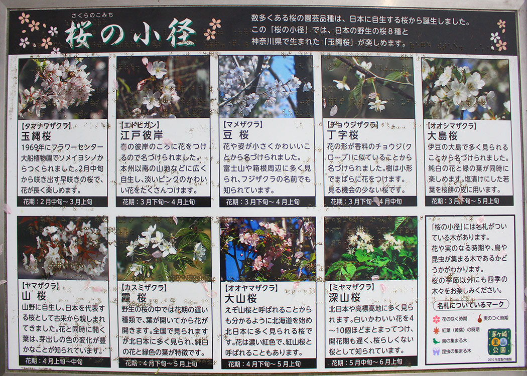 ソメイヨシノやオオシマザクラ、カンヒザクラ、シダレザクラなど、多種類の桜がたくさん。【MAP】