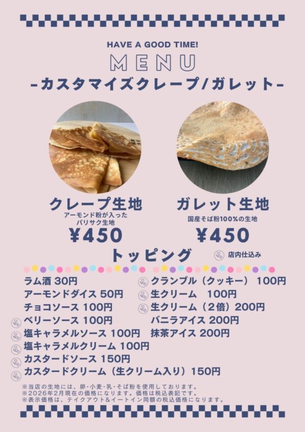クレープメニューのガレット変更も歓迎です。