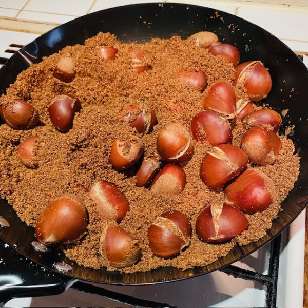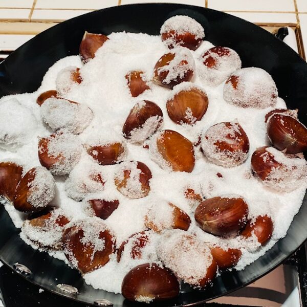 ほんわりと温かくなったら水分をしっかり拭き取った栗を入れ、