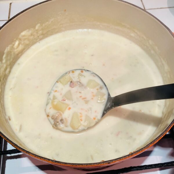 ファーマーズワーフで食べた「クラムチャウダー」だ。