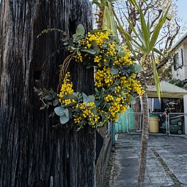 リース台が細いのでクリスマスの時とは全く違い難しい。