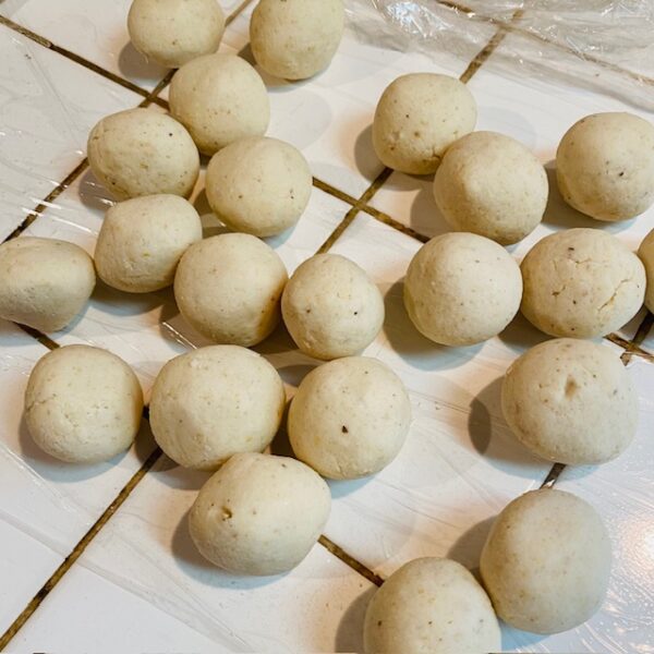 休ませておいた生地を30gぐらいずつに分けボール状に成形する。