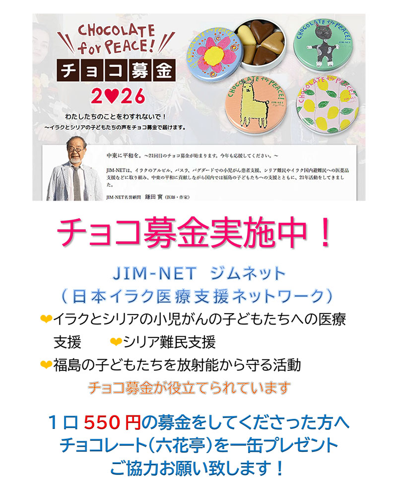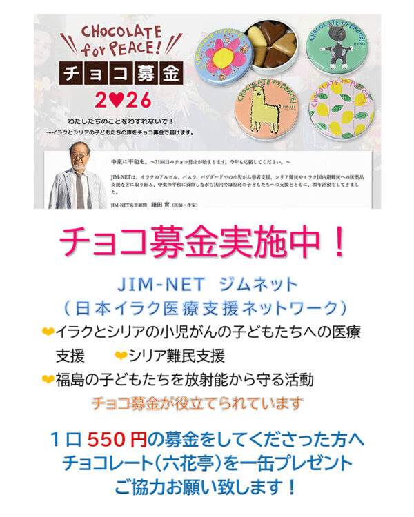 募金の主催は、ガンや白血病のイラクの子どもたちへの医療支援をメインに活動されている団体「JIM-NET」さん。