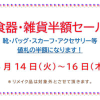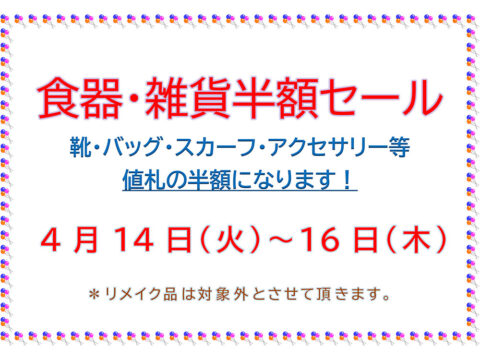 ★4/14(火)~16(木)は「食器・雑貨半額セール」!